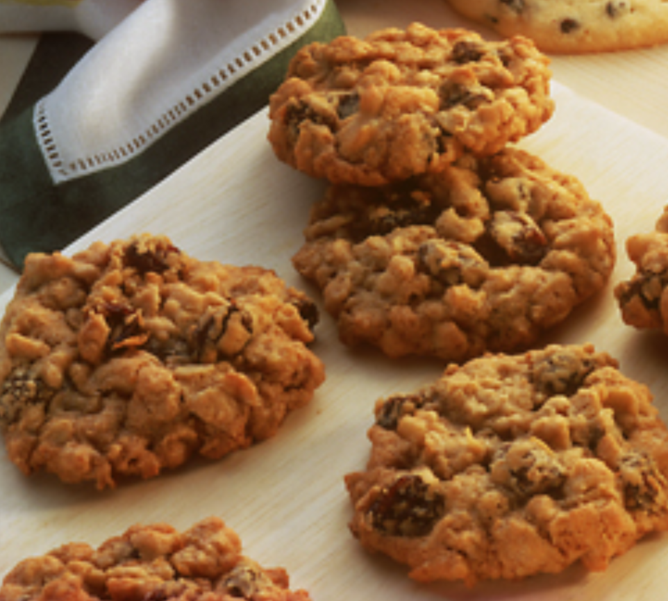 Beat together the butter, brown sugar, sugar, milk, egg, and vanilla until light and fluffy. Add dry ingredients ( flour, cinnamon, baking soda, and salt.) and blend well. Fold in the oats, raisins, and nuts. Drop onto cookie sheets with tablespoon, and bake 12-15 minutes. Remove and cool on wire racks. Enjoy!
