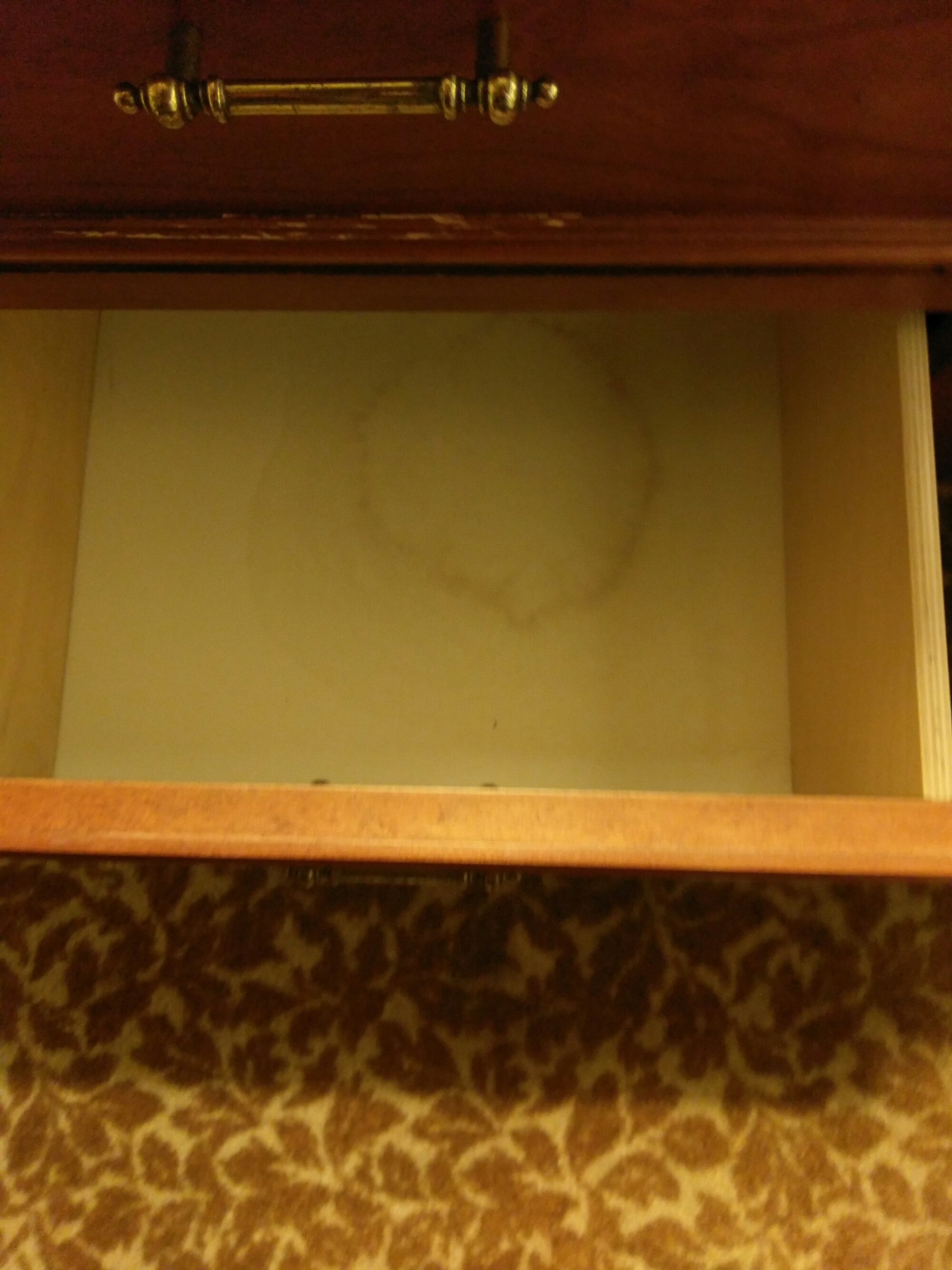 The second room was identically set up, and the safe was in working order. Harrah’s is indeed in need of a make over though. They have a new tower opening soon with newly renovated rooms but this was not it…there were dents in the walls, stains on the carpet, and stains inside the dresser drawers (more than one). Not 5 star accommodation for sure. The bathroom was small and there is a dark colored shower curtain and no lighting in the shower stall itself. Even with the bathroom light it was like showering in a cave lol.