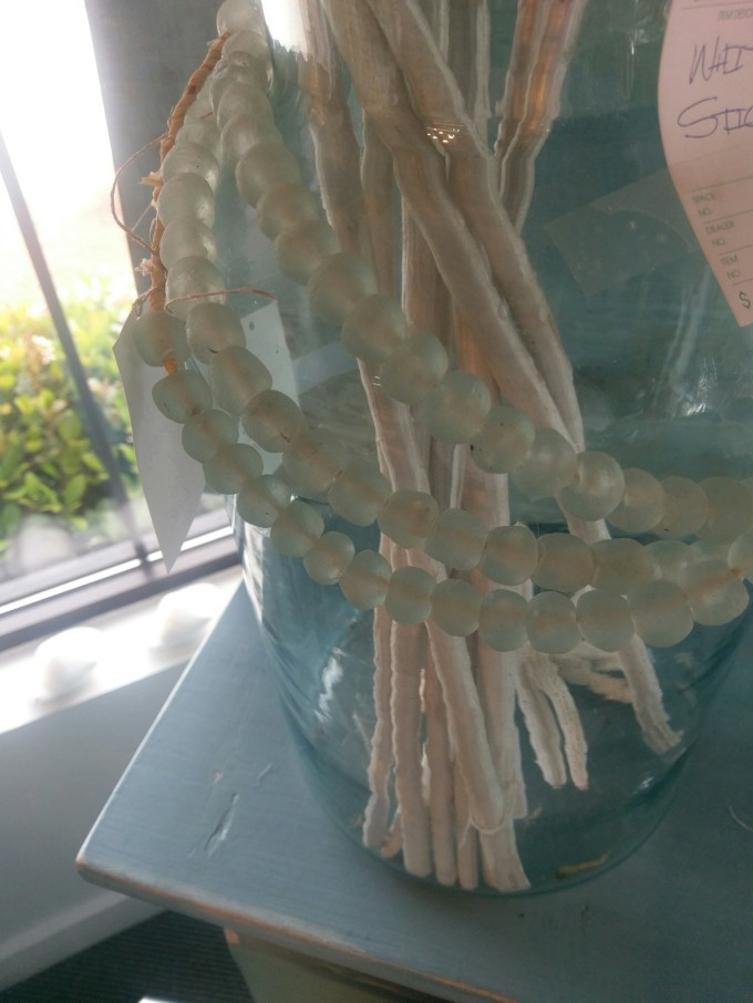 I posted earlier about the boho bead trend. Snazzy little beads used in a variety of ways in your home decor! Well…I found an amped up version made from sea glass!!! They are gorgeous!