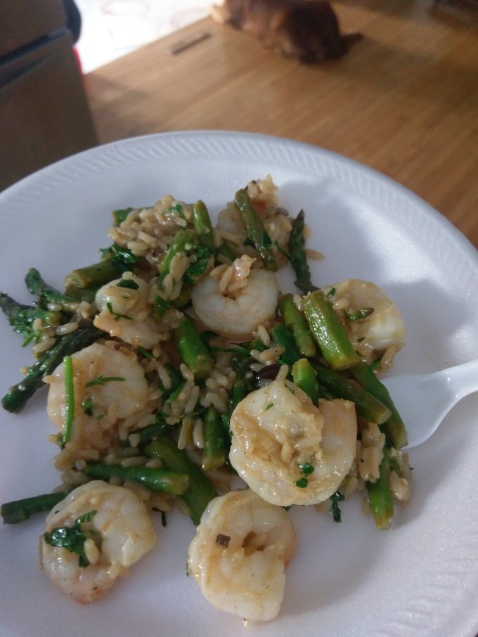 I hit the dinner time trifecta tonight! Light but still filling, healthy, and tons of delicious flavor! If your dying for something different for dinner this is it! Lemon Garlic Shrimp with Asparagus!