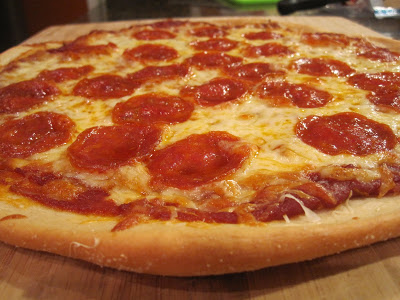 Enough history for tonight…here is a great recipe for pizza crust that doesn’t take long periods of rising and kneading to make a fabulously tasty crust. I add premade pizza sauce and the veggies and cheeses that we enjoy the most!