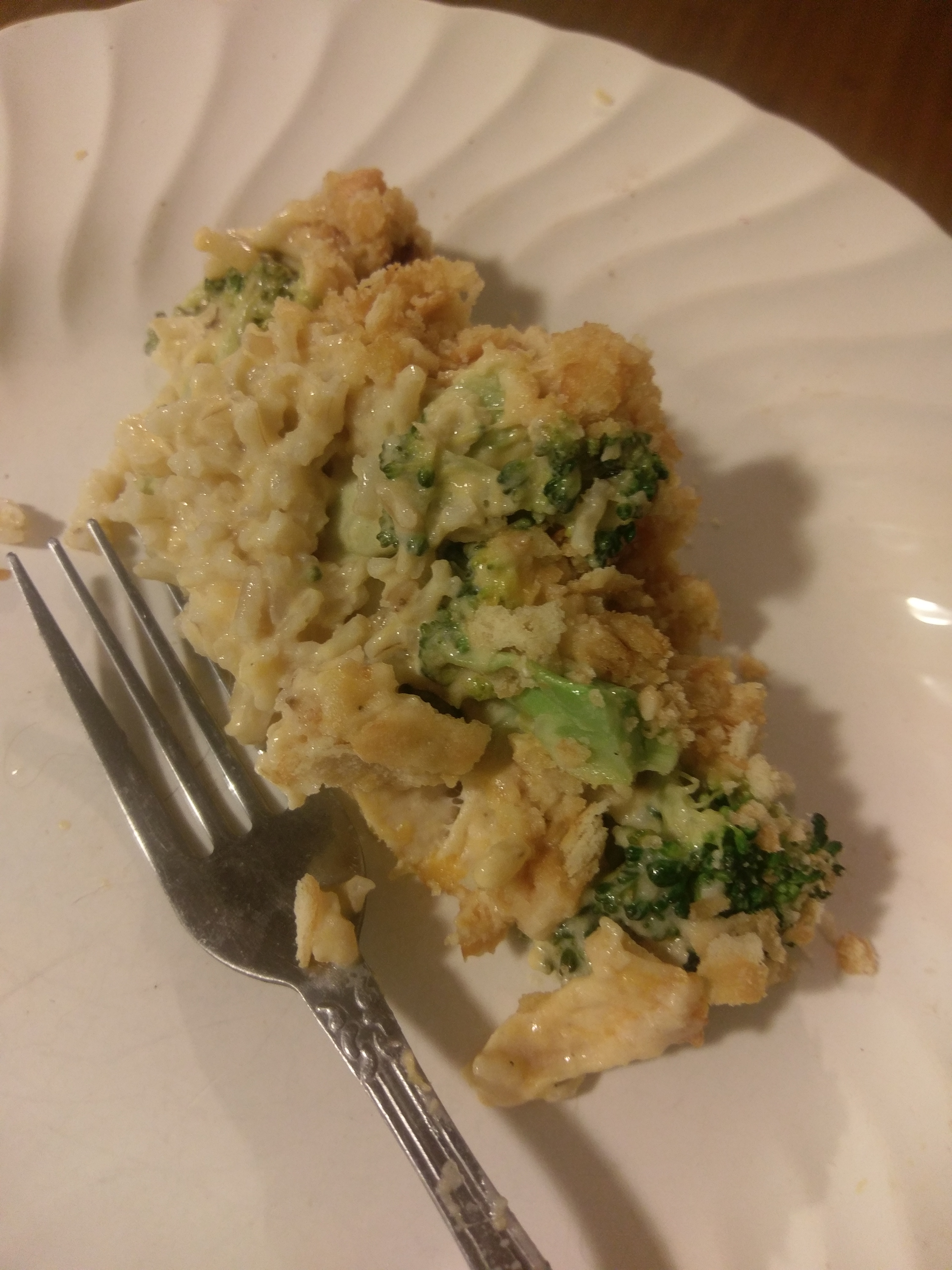 For the sauce add 1 c. heavy cream, 1/2c. Water, 1/2c sour cream, and two cups mild chedder cheese. Heat through until cheese melts and sauce is smooth. Pour over top of the rice, broccoli and chicken.