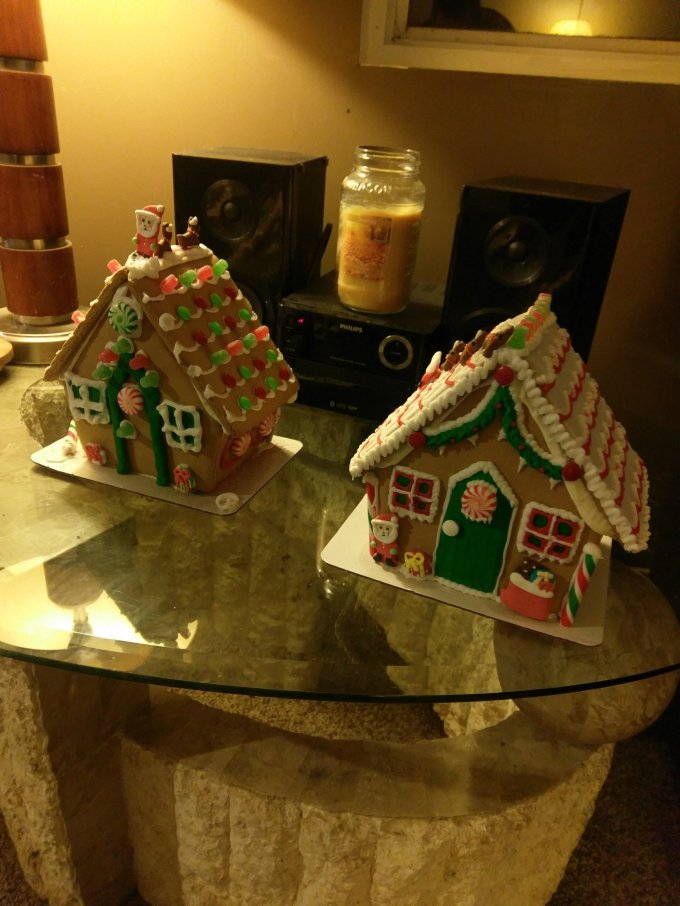 Once past Halloween, my bff Amber and I had a couple of bff craft nights, we made college football themed door wreaths and in gearing up for Christmas we made gingerbread houses!