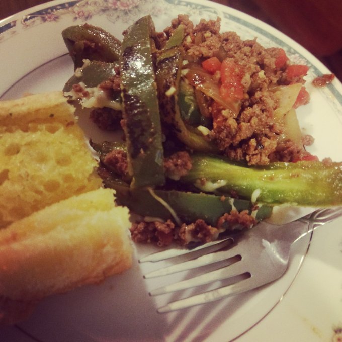 Have you ever really wanted something to eat but then you remember all of the extra work it takes to make that particular dish so you decide it’s not worth the time. I have several recipes that are like this. Lasagna for example, and in tonight’s case stuffed bell peppers. I love stuffed peppers and there are lots of different ways to make them, but they are a lot of work! Prep and cook the filling, stuff them, top them, and bake em up! It’s a lot of steps!