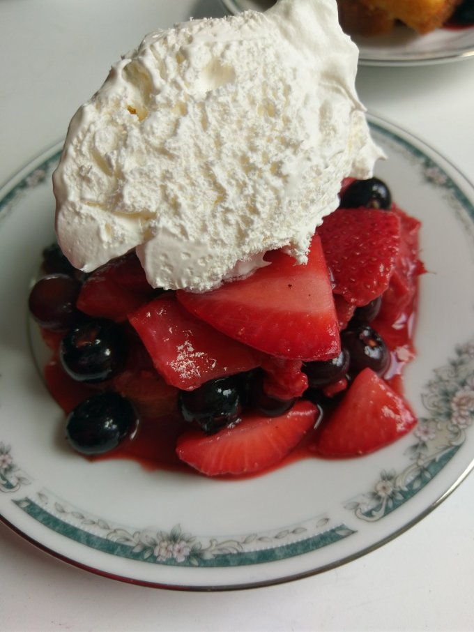 Cut pound cake into slices, pour chilled Berry mixture over the cake and top with whipped cream. Enjoy!