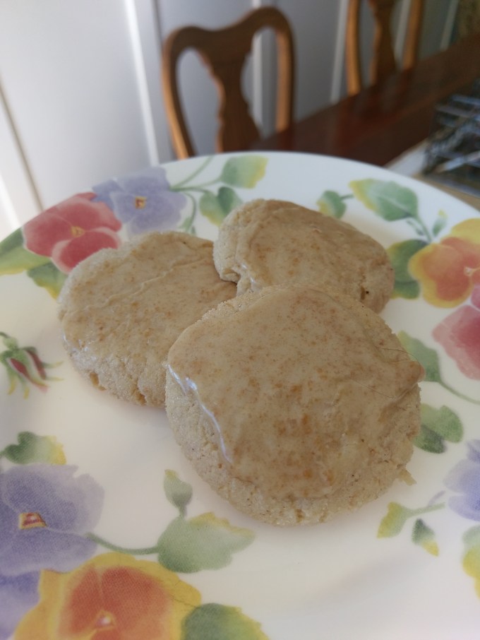 Mix until thin glaze consistency. Pour into cookies after you remove them from the oven.