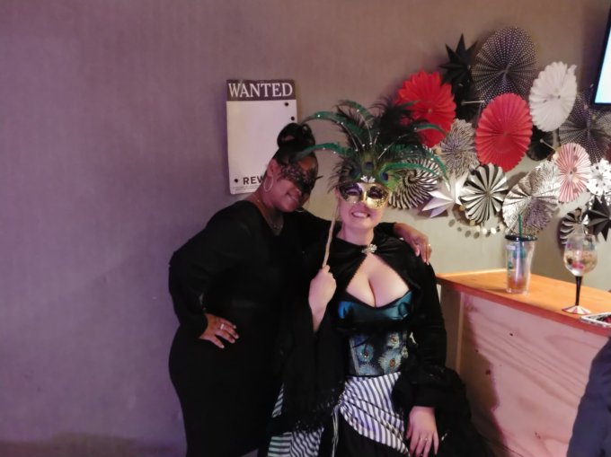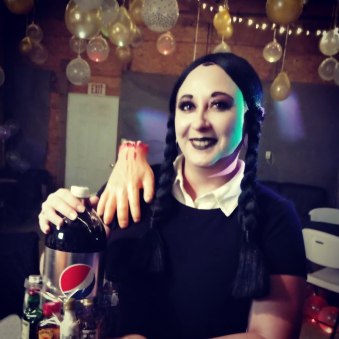 We held a costume/ mask contest this year for the first time… I have no idea how it is I hold an annual Halloween party and never had a costume contest but we remedied that situation this year! Our big winner was Kasey with her Adams Family inspired look! It really was impressive!