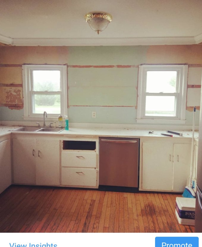 Our kitchen was original to the house built in the 1950’s by my husbands grandfather. Needless to say all of the changes have been made with a lot of thought and respect for this family home. It means a lot to us to be able to update the home that his family gathered in for so many wonderful years. I didn’t get a true before…my husband jumps right in! Lol but here is a before that shows a bit of the layout.