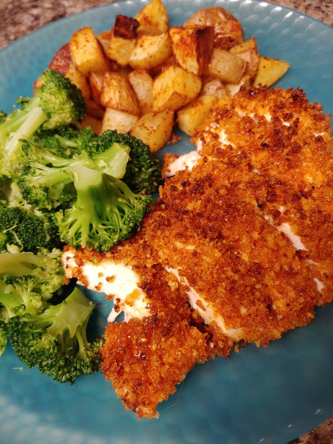 Snow days make me want to cook!! Something about being cooped up that pushes me into the kitchen everytime. So for dinner tonite a sweet and spicy breaded baked chicken breast.