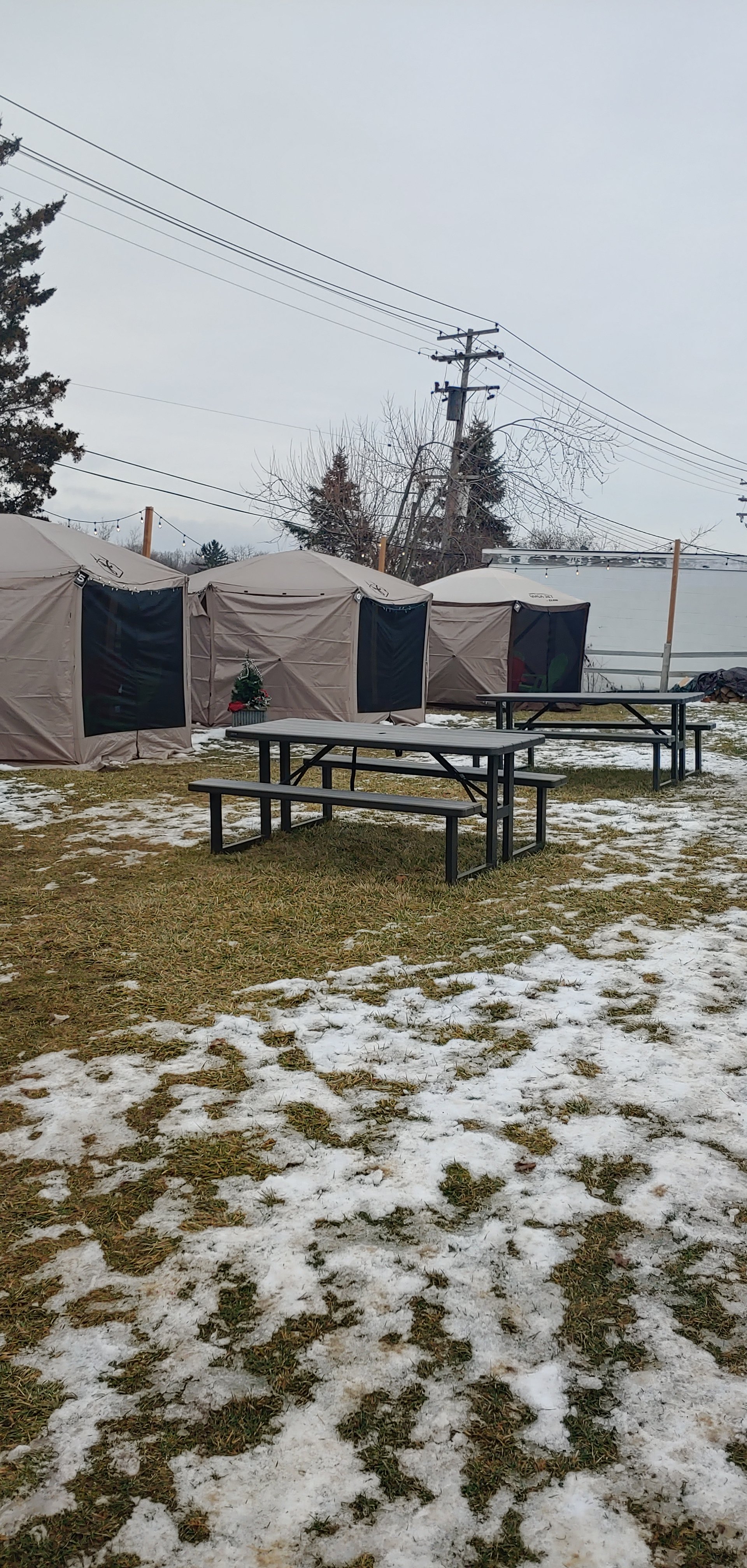 The igloos are small heated spaces with picnic tables or in some cases adirondack style chairs comfy enough for a quick lunch for sure! Some of the igloos will hold up to 8 people comfortably.