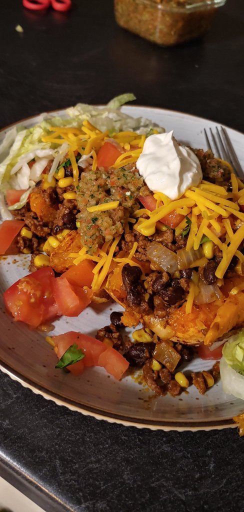 The sweet hot combination of the potato with the taco seasoned meat was SO yummy! Here is what you need