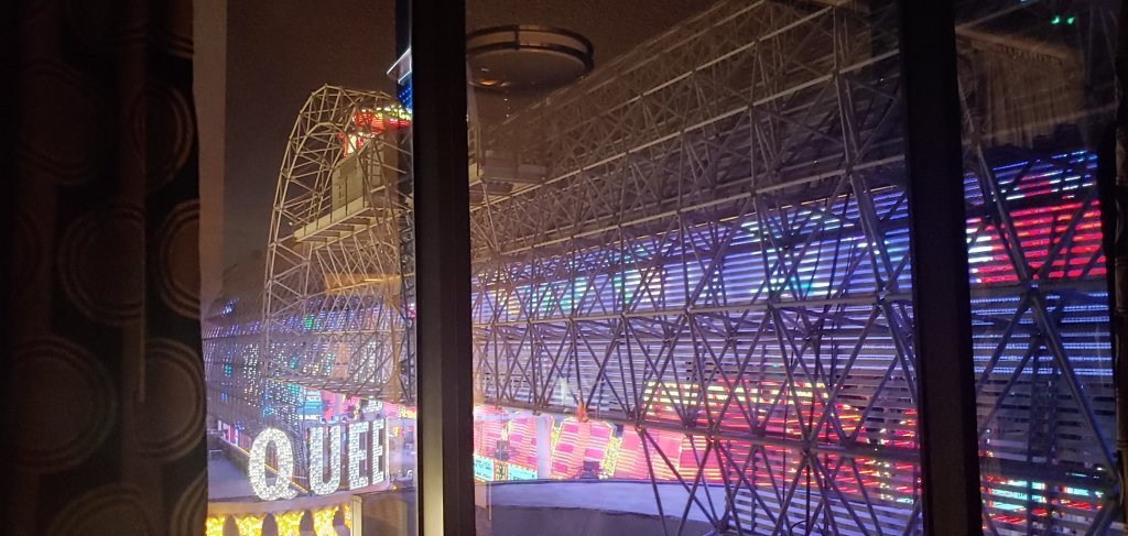 Views on Fremont St are not great because of the LED canopy covering the street we were just low enough that we could see some of the lights but this is also not a place to go for a view.