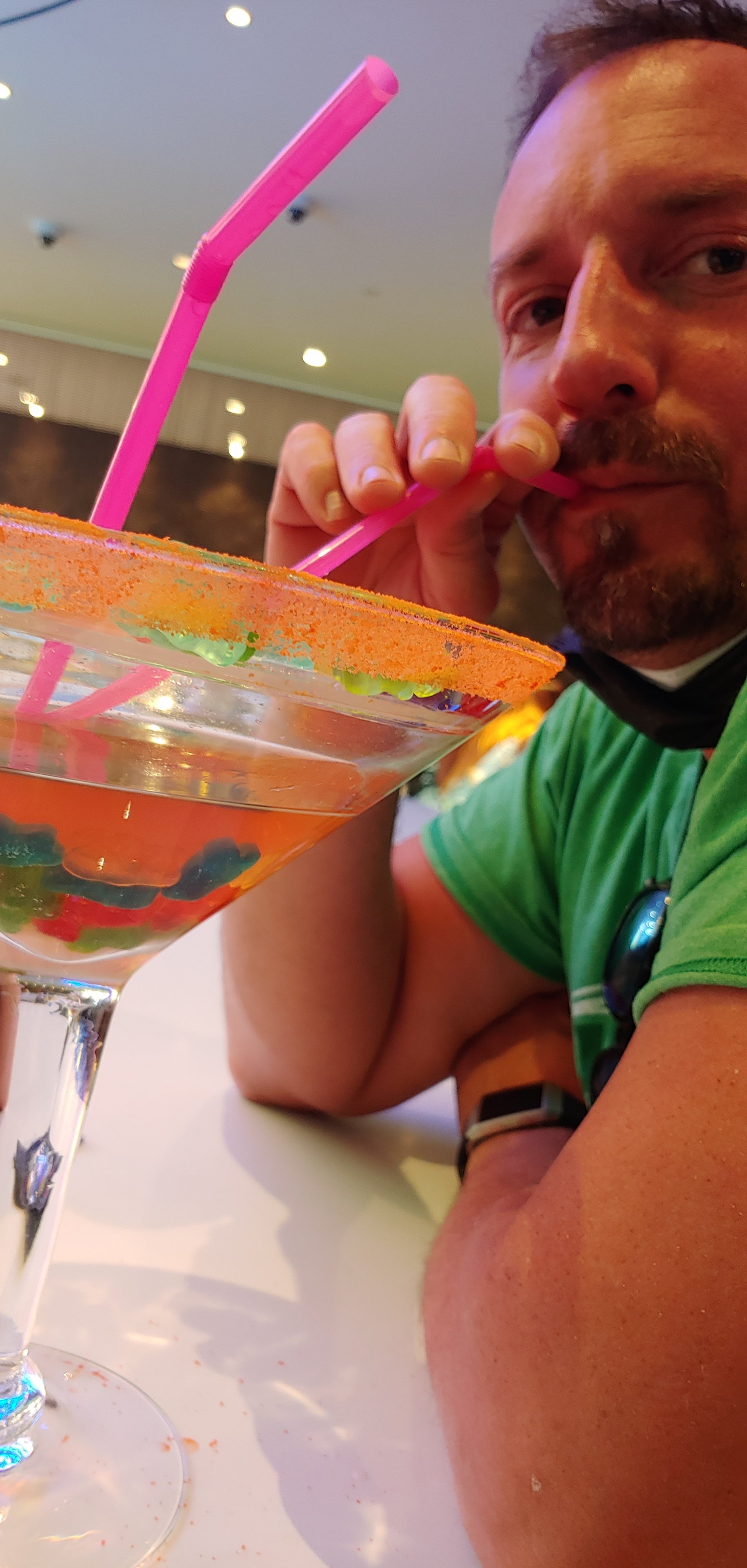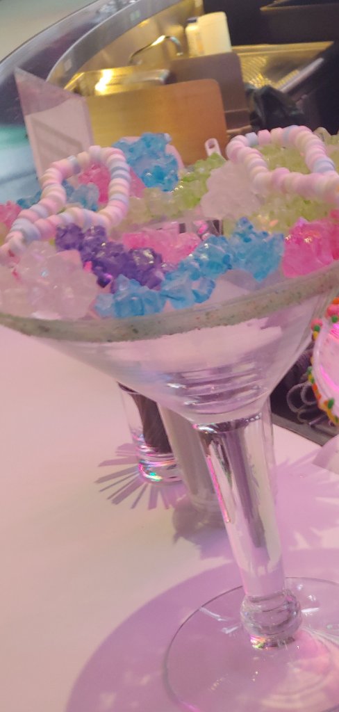 This is a bright fun atmosphere with promenade views. The wait staff and bar tenders were great, very quick service, friendly and they have a super fun little twist here as you can imagine. All of the drinks are cady themed and garnished with a variety of candies! Oh and.. THEY’RE HUGE!