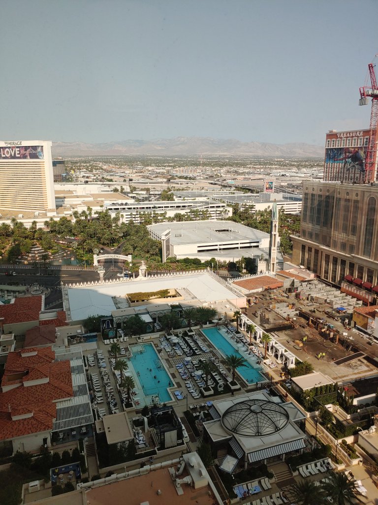 We had what I would consider a pool view room. We could see the top of the Treasure Island resort, the corner of the Mirage, and bit of Fashion Show Mall. It was underwhelming to say the least, especially since this was a $50/night upgrade! I emailed my discontent to the guest services department and they returned my call within 24 hours. They were apologetic and offered to take off our resort fees, which washed the additional cost of the upgrade a perfectly acceptable compromise. Overall I was very happy with the prompt response to my email, and willingness to help a customer A++ for customer service!