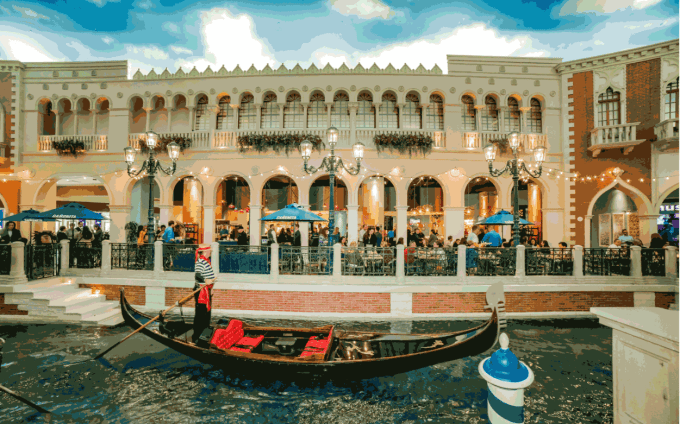 This area includes the Gondola ride experience that takes you through and around the resort properties. There is a very casual affordable food court, we were able to get two breakfast sandwich and two coffees for less than $20, which in Vegas is a great price! There are also some casual sit down dining areas including Italian, Burgers,and Pub style Foods in this area of the resort. And lots of great shopping there too!