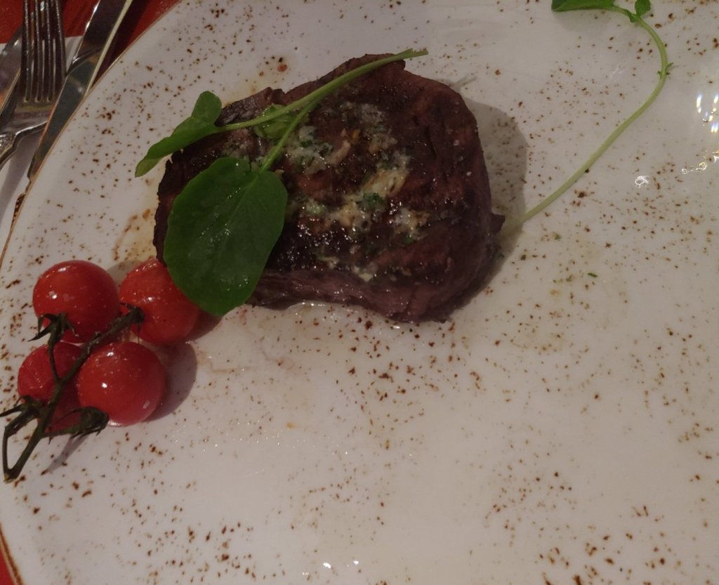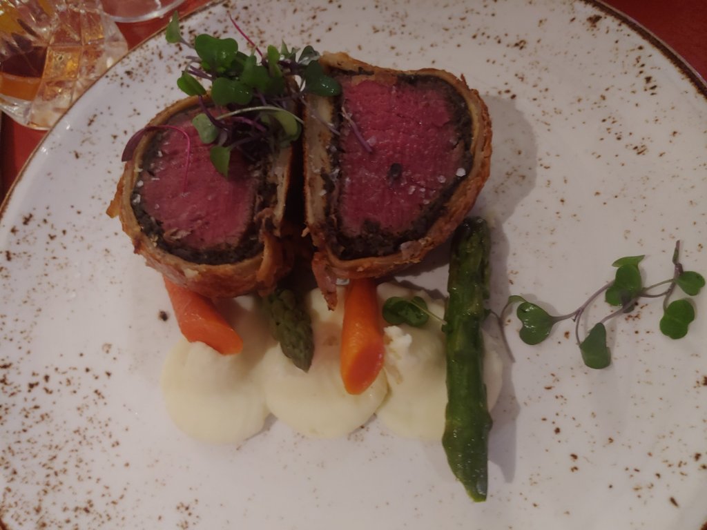 Andy’s main course was the beef wellington a dish that Gordon Ramsey made famous and is common on a lot of his restaurant menus. The wait staff informed him that the Wellington comes cooked medium rare. He was fine with that but when it arrived his was quite rare while others at the table were more of a medium rare. He still enjoyed it immensely and said it was delicious!