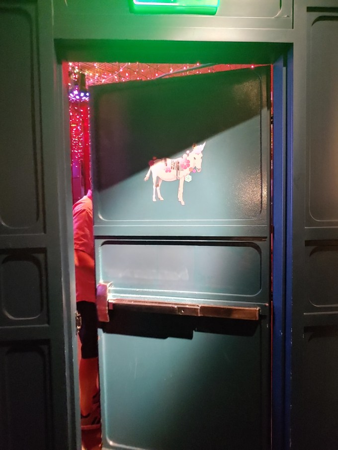To find this hidden gem head up the escalator to the second floor, and enter the food court area, behind the booth seating on the side there is a small door with a donkey sticker on it. This is the entrance to the ghost donkey bar! There is no other signage to this location, find the little donkey and you are there!