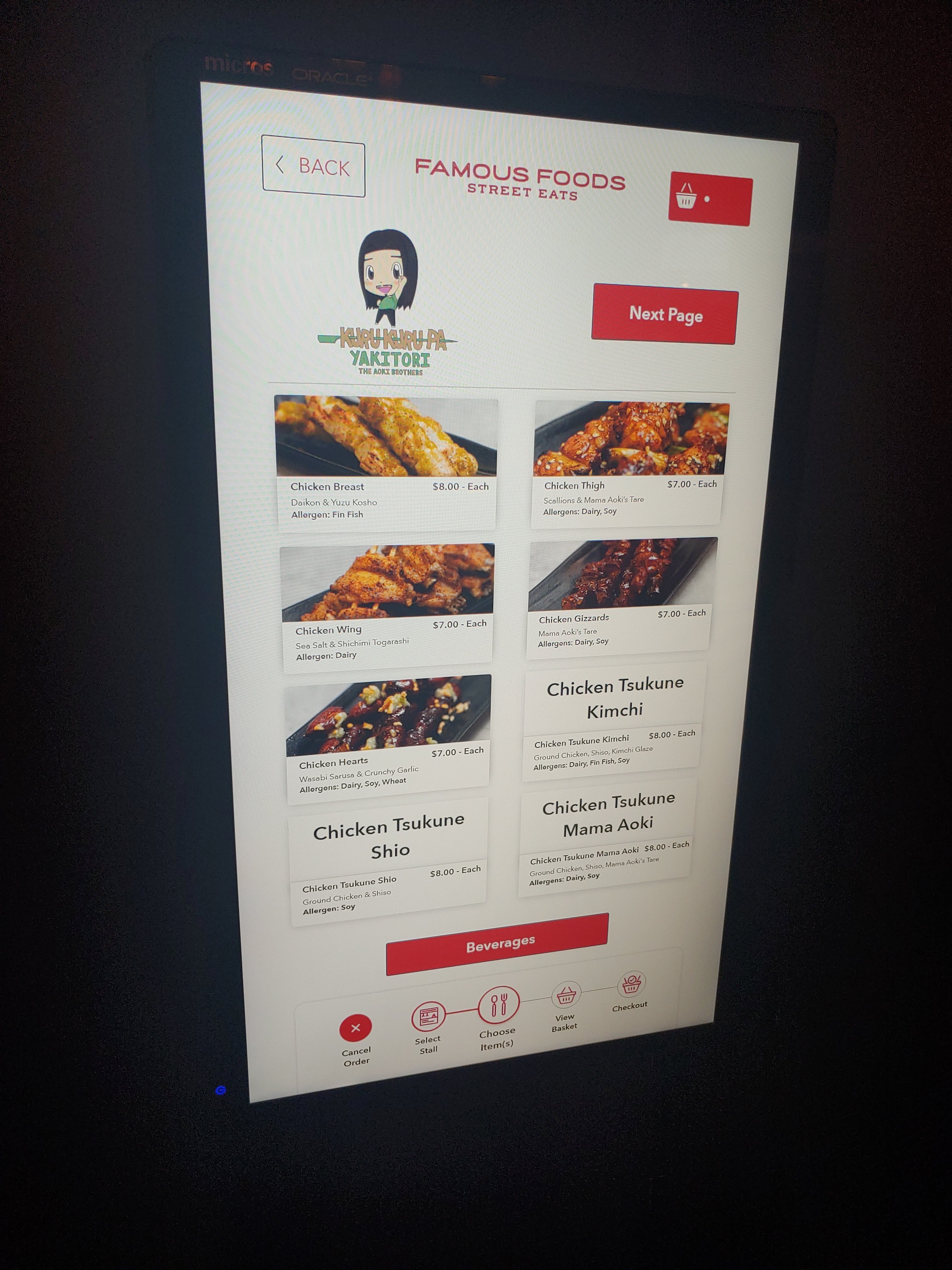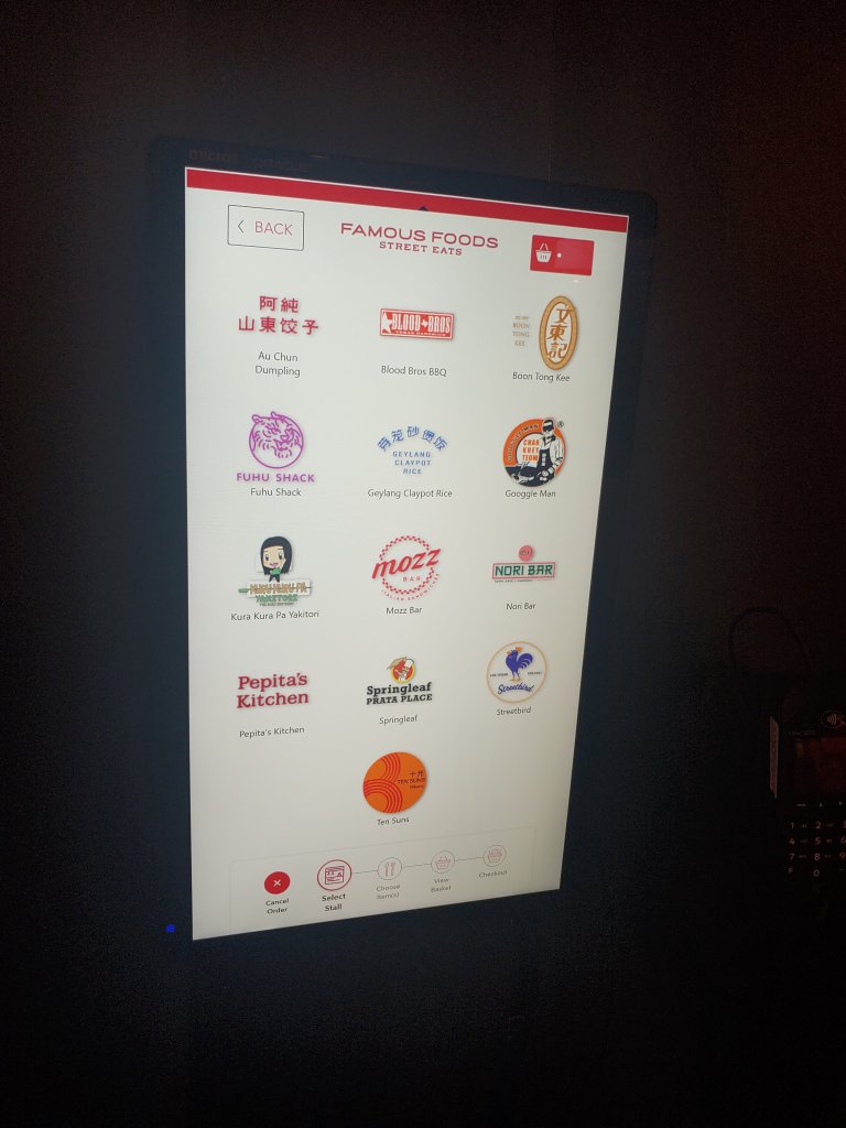 Famous Foods Street Eats features Asian and Western themed restaurants and they offer a touch screen order kiosk where you can order from multiple vendors in one place and pick up once you’re notified by text that your food is ready! This is a great way to eliminate long lines and allow everyone to order what they like!