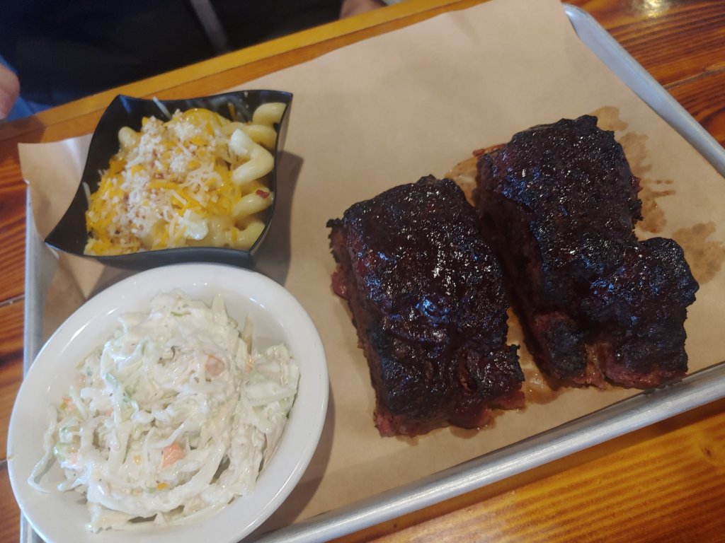 Andy enjoyed a smoked meatloaf with two sides. He chose the house coleslaw, and smoked mac and cheese. The meatloaf was VERY good! Well cooked tender, and the rub seasoning was truly delicious with hints of barbecue, smoke, and cinnamon it was really good and we highly recommend you give it a try!