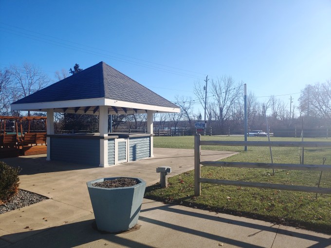This lovely indoor/outdoor venue is located in Lakeside Marblehead, OH on North Buck Lake Rd. Near Crabby Joe’s Restaurant. Although not directly on the lake, they still make the most of the natural surrounding with outdoor dining and bar areas, comfortable seating, swings, and firepits. It’s a very inviting place! Inside you’ll find a raised bar area and lower seating featuring a beautiful fireplace. And during the summer months there are overhead doors that open up to let the lake breezes in. Being close to the holiday season we were able to appreciate the very elaborate Grinch themed holiday decorations including a huge tree in the entry with it’s own creative whimsy! A really lovely atmosphere all around!