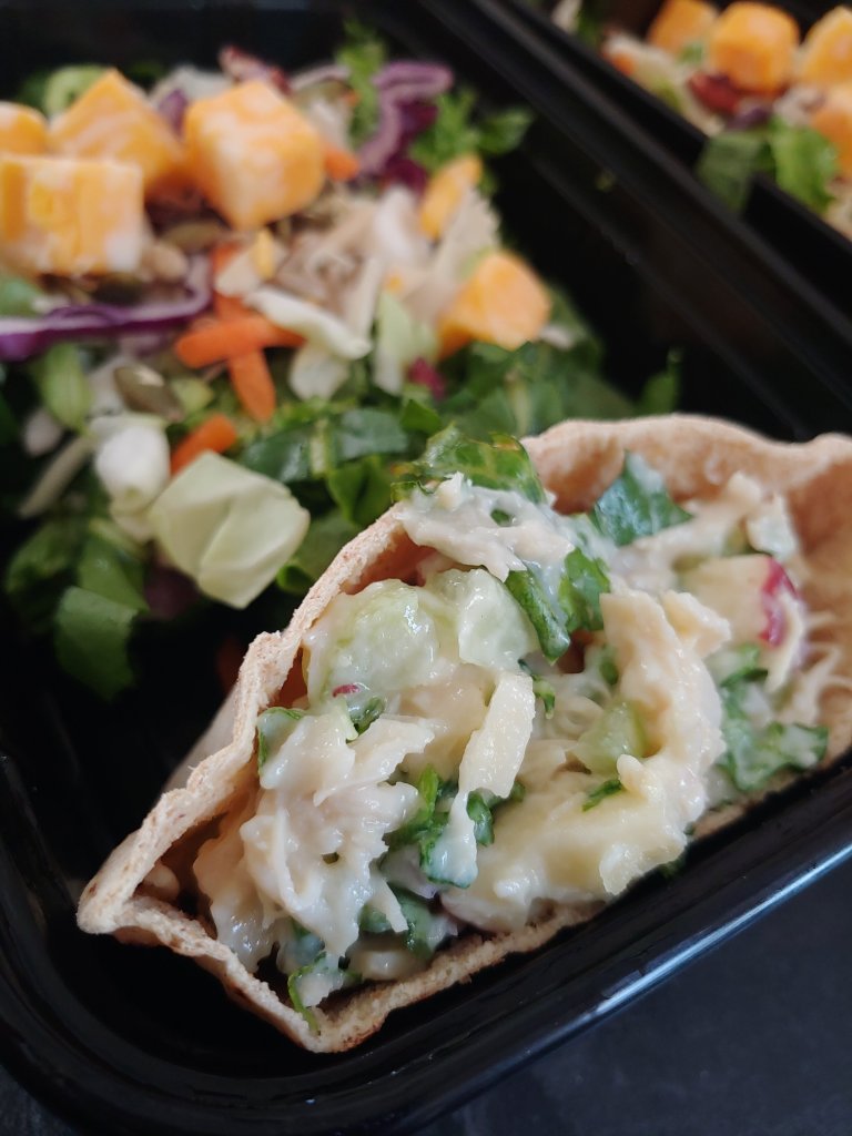 The start of another week and we continue to food prep our breakfast and lunch. On the menu this week we have veggie breakfast burritos, and for lunch chicken salad pita sandwiches with a side salad.