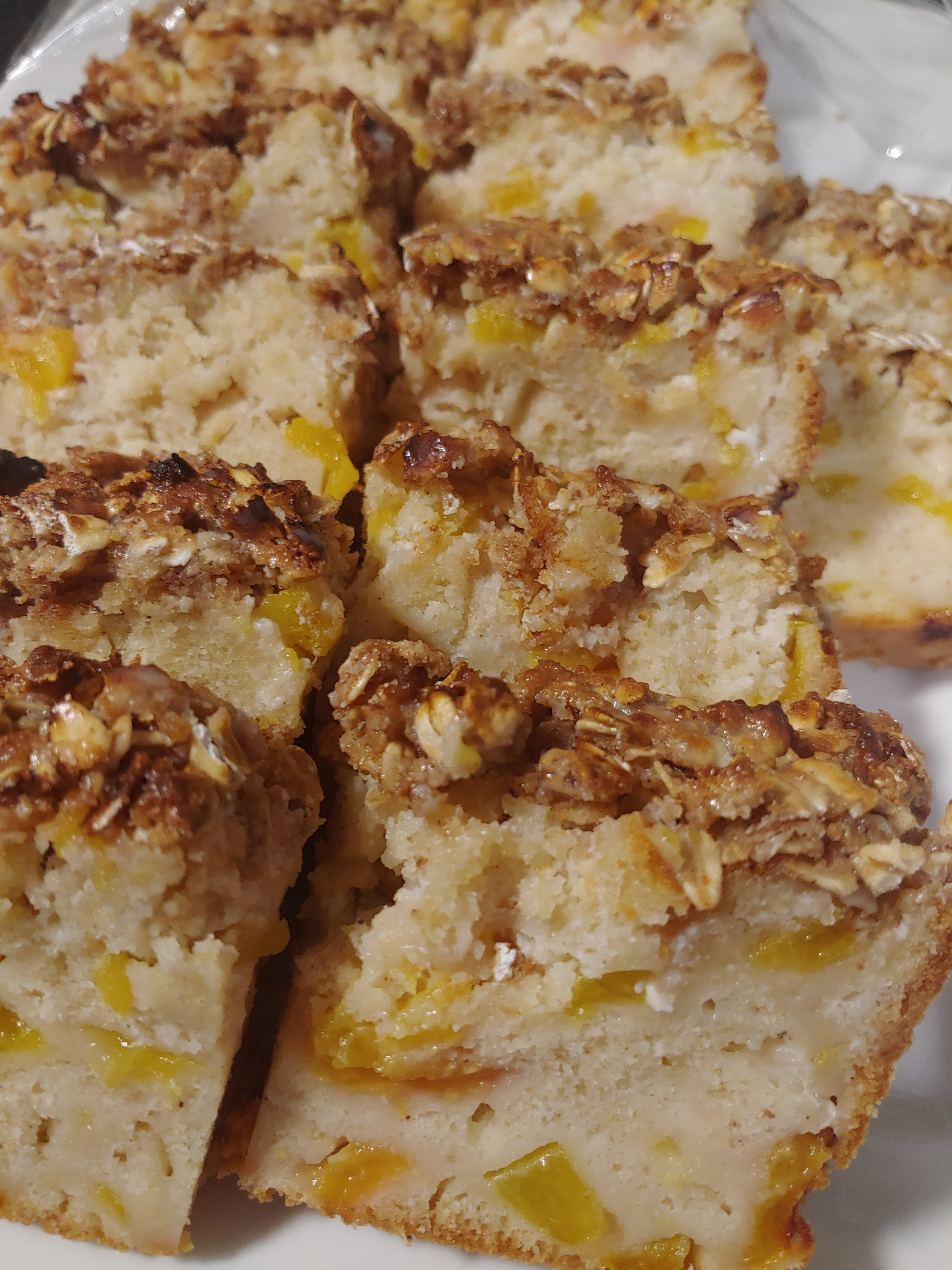I used fresh peaches, and added an almond extract instead of vanilla. I’m not joking when I tell you all bread should be THIS bread! 😂 It is delicious!
