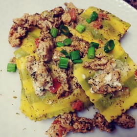 Spicy Sausage with Spinach and Ricotta Ravioli